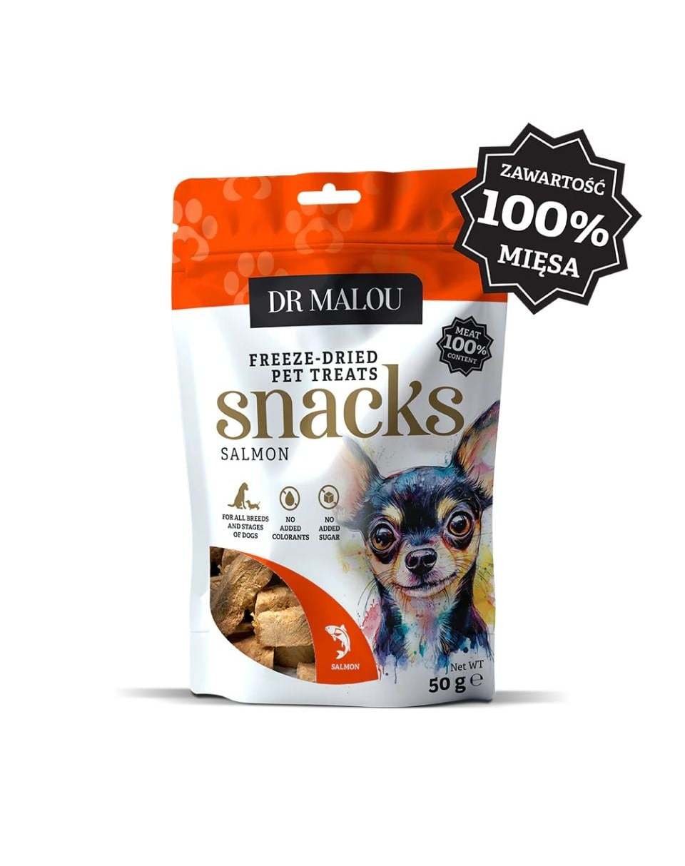 A Dr. Malou Fagyasztva szárított Lazac Kockák egy 100%-ban természetes jutalomfalat minden fajtájú és korú kutya számára. Ideális jutalmazáshoz, a napi étrend változatossá tételéhez és egészséges motivációként a közös játékhoz. Bízzon a természet erejében!