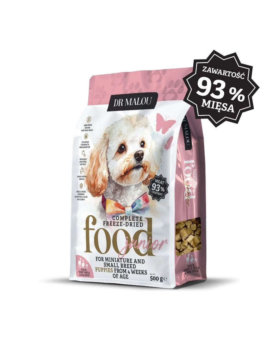 A Dr. Malou liofilizált eledel formuláját a kölyökkutyák igényeihez igazították: gazdag kacsahúsban, belsőségekben és tojássárgájában, laktózmentes kecsketejjel dúsítva. Könnyen emészthető fehérjét, valamint a növekedéshez, a vitalitáshoz és az idegrendszer fejlődéséhez szükséges értékes vitaminokat és ásványi anyagokat biztosít. A hozzáadott inulin (prebiotikum) támogatja az érzékeny emésztőrendszert, míg a halolajból származó omega-3 zsírsavak hozzájárulnak az agy megfelelő fejlődéséhez és a fényes szőrzethez. A liofilizálásnak köszönhetően az eledel megőrzi összetevőinek frissességét és tápértékét, miközben mentes a mesterséges adalékanyagoktól, gabonáktól és tartósítószerektől.