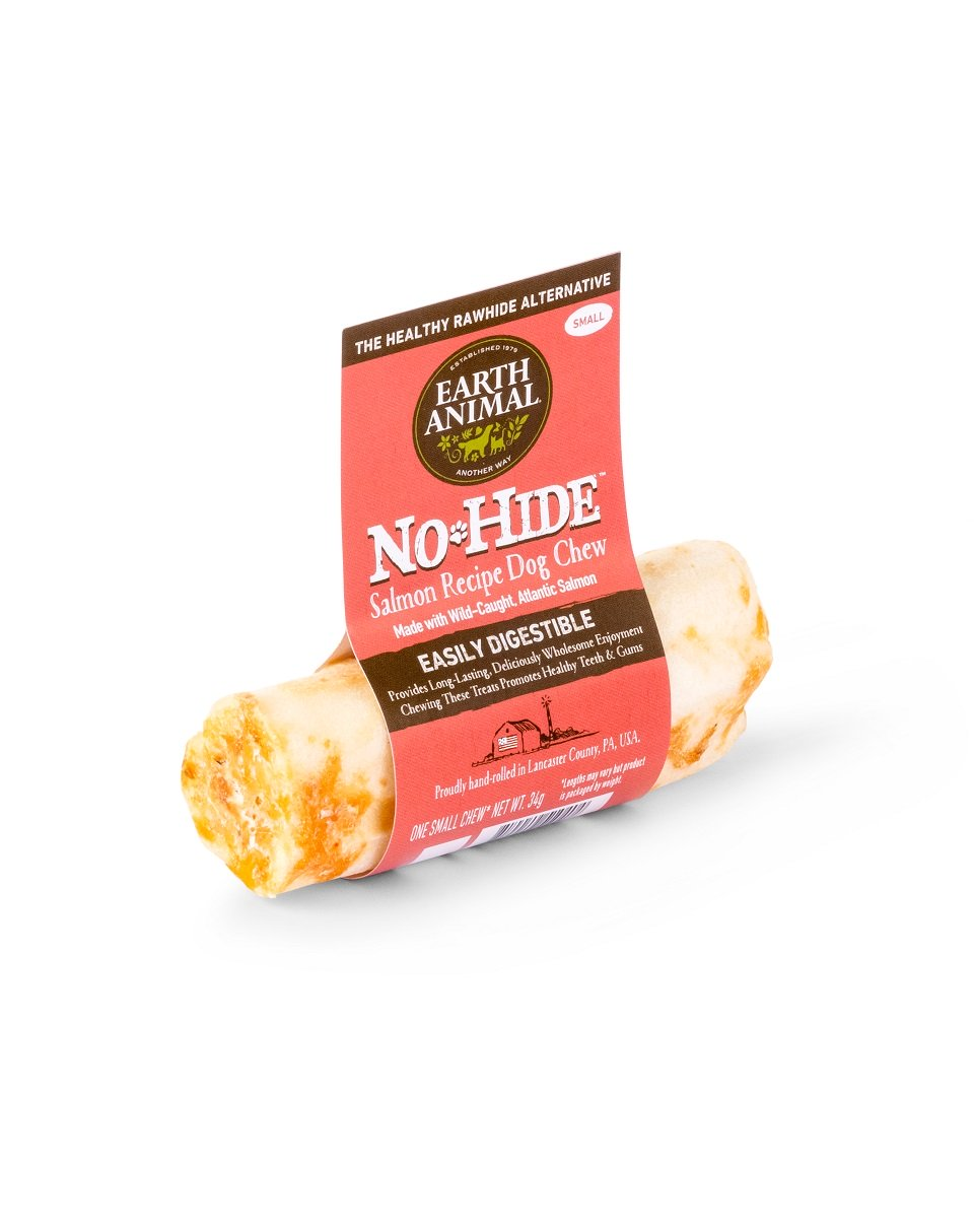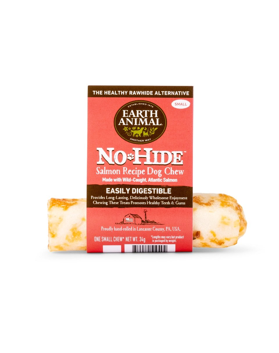 A No-Hides alaposan össze van keverve mindössze 6 összetevővel és 1 kiegyensúlyozott, robbanásszerű ízű fehérjével - humánusan nevelt csirke, humánusan nevelt, füvesített marhahús vagy vadon fogott atlanti lazac -, majd kézzel tekercselik, sütik, bevonják, levegőn szárítják és szeretettel csomagolják a pennsylvaniai Lancaster megyében. Minden egyes rágóka vegyszer-, fehérítő- és formaldehidmentes, így könnyen emészthető és tápláló.