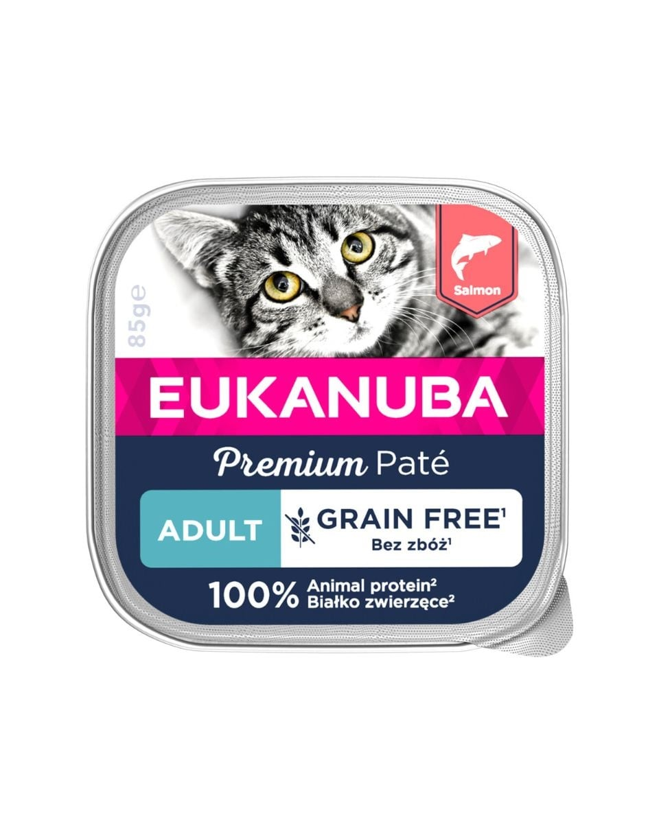 Az EUKANUBA Grain Free Adult egy nedves eledel felnőtt macskák számára lazaccal.