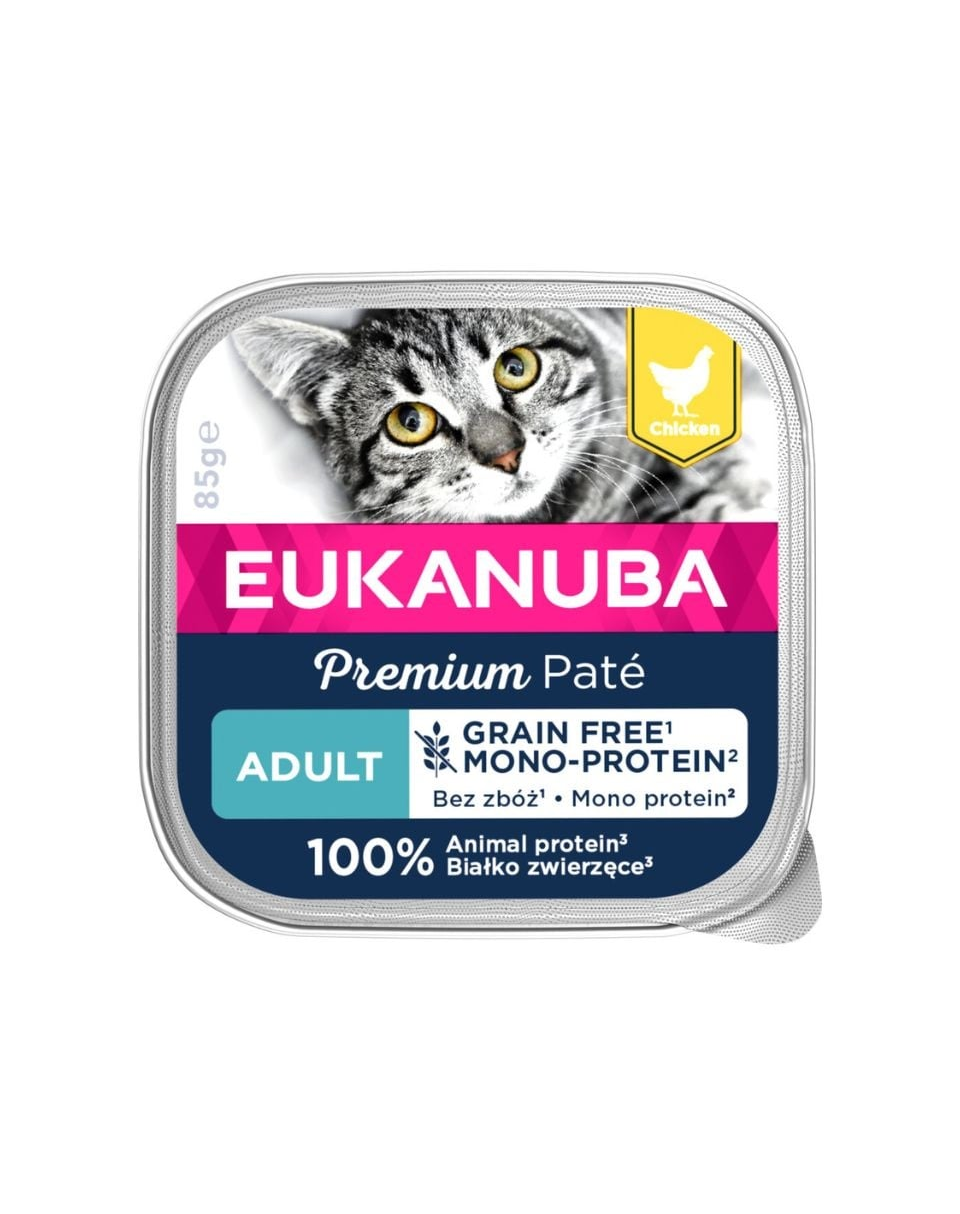 Az EUKANUBA Grain Free Adult egy nedves eledel felnőtt macskák számára csirkehússal.