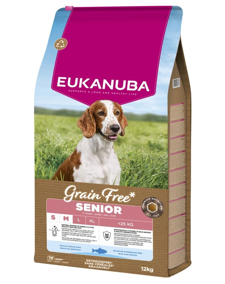 Gabonamentes száraz eledel idős, kis és közepes testű kutyák számára. A receptúra alapja az óceáni hal – egy könnyen emészthető, jól felszívódó fehérje- és omega-3 zsírsavforrás, amely támogatja az idős kutyák bőrét, szőrzetét, ízületeit és általános állapotát.