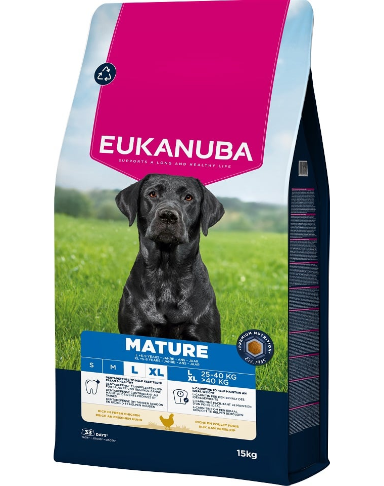 EUKANUBA Mature Large Breeds Chicken – száraz táp érett nagytestű kutyák számára, friss csirkével gazdagítva