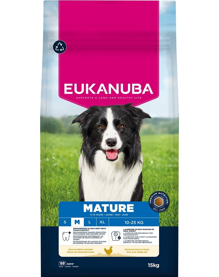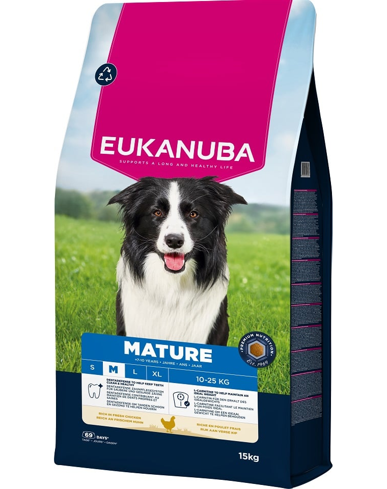 EUKANUBA Mature Medium Breeds Chicken – száraz táp érett közepes méretű kutyák számára, friss csirkével gazdagítva