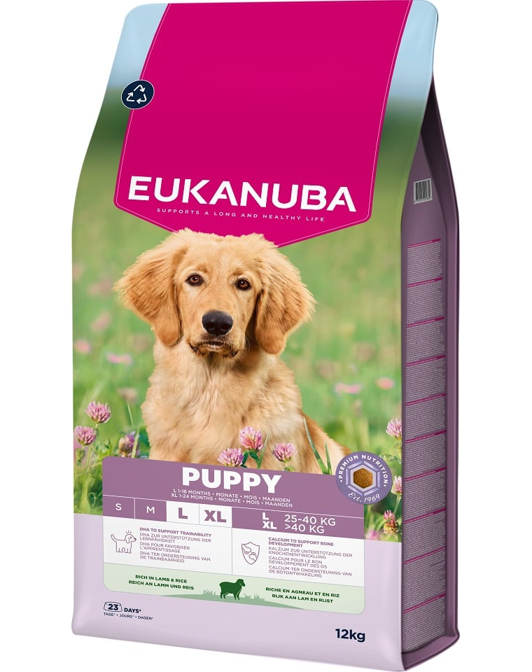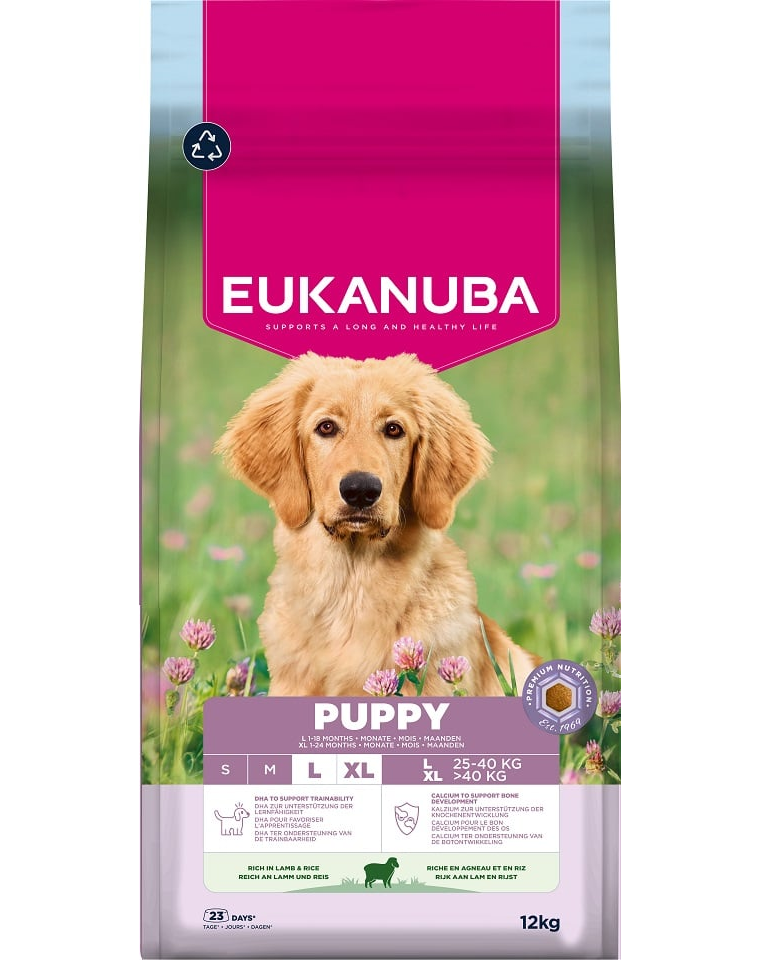Az EUKANUBA Life Care vonal prémium minőségű tápokat kínál, amelyek tudományos kutatások alapján készültek, hogy megfeleljenek a kutyák szervezetének szükségleteinek életük minden szakaszában. A Puppy Large Breeds Lamb & Rice változatot nagytestű (1–18 hónap) és óriás (1–24 hónap) kölyökkutyák számára fejlesztették ki, biztosítva számukra a teljesen kiegyensúlyozott étrendet, amely támogatja az intenzív növekedést és a megfelelő fejlődést.