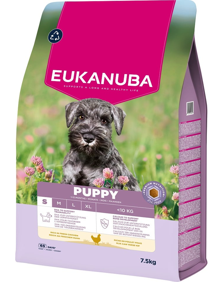 Eukanuba Puppy Small Breed egy fejlett táplálkozási támogatás, amely gondoskodik a kis fajtájú kiskutyák megfelelő fejlődéséről és megalapozza egészségüket és jó kondíciójukat egész életükre.