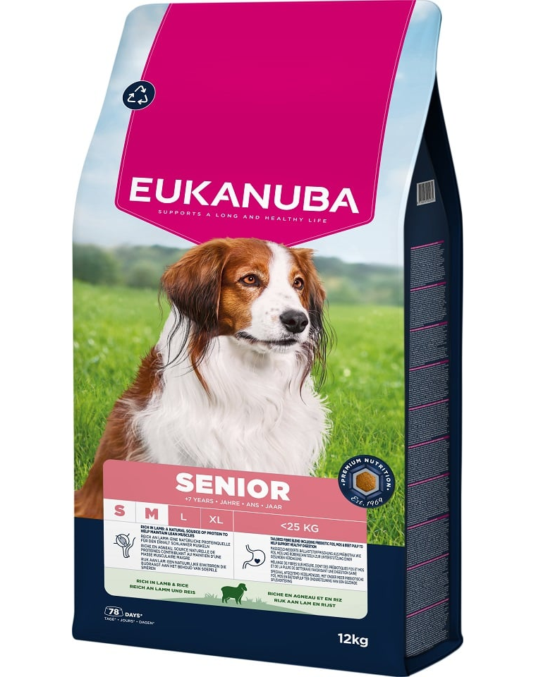 EUKANUBA Senior Small & Medium Breeds Lamb & Rice – száraz táp idős kutyák számára kis és közepes fajtákban, gazdag bárányhúsban és rizsben
