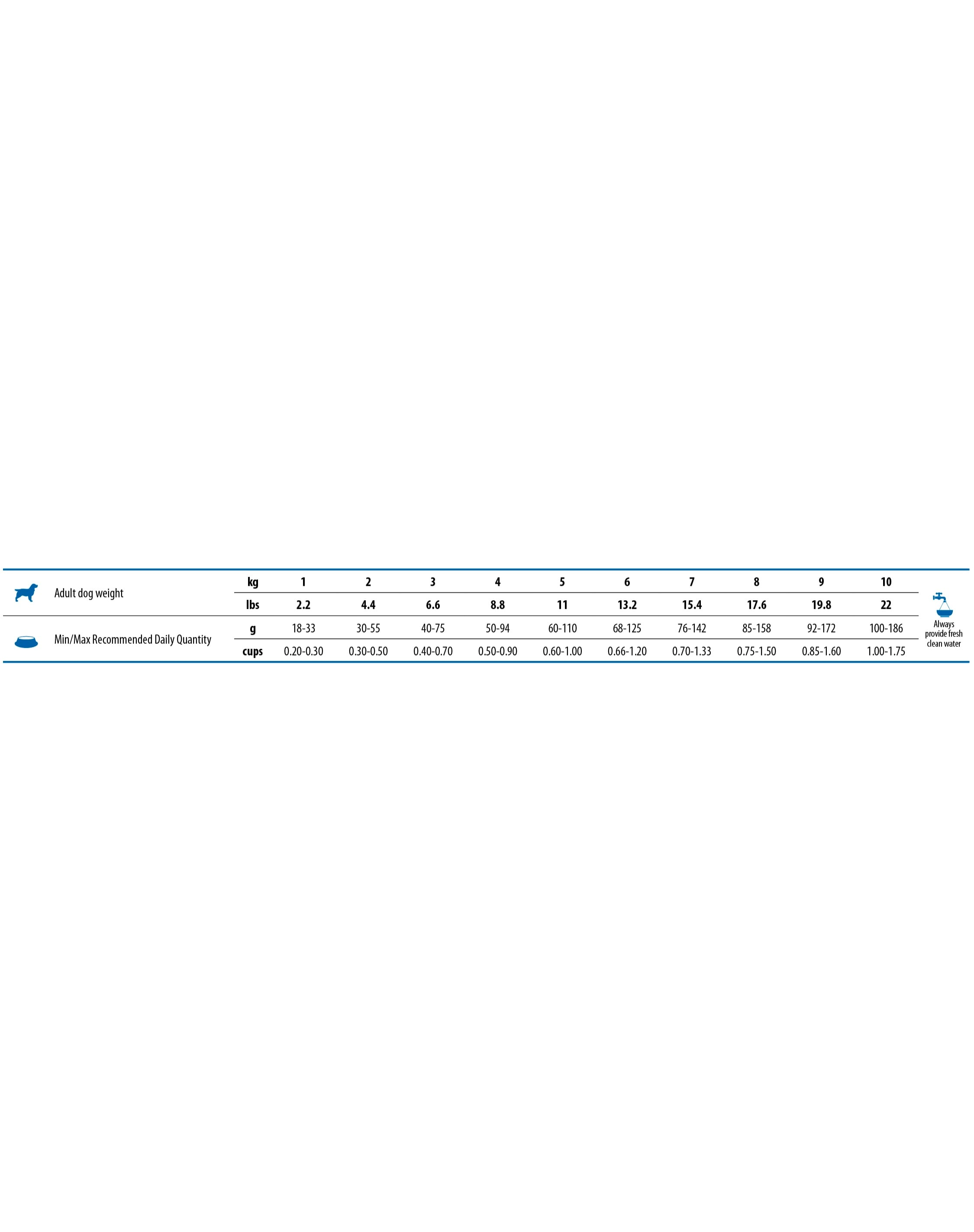 Nyersfehérje 34,00%; nyerszsír 18,00%; nyersrost 3,30%; nedvesség 9,00%; nyershamu 8,60%; kalcium 1,10%; foszfor 0,80%; Omega-6 3,30%; Omega-3 0,90%; DHA 0,50%; EPA 0,30%; glükozamin 1200mg/kg; kondroitin-szulfát 900mg/kg.