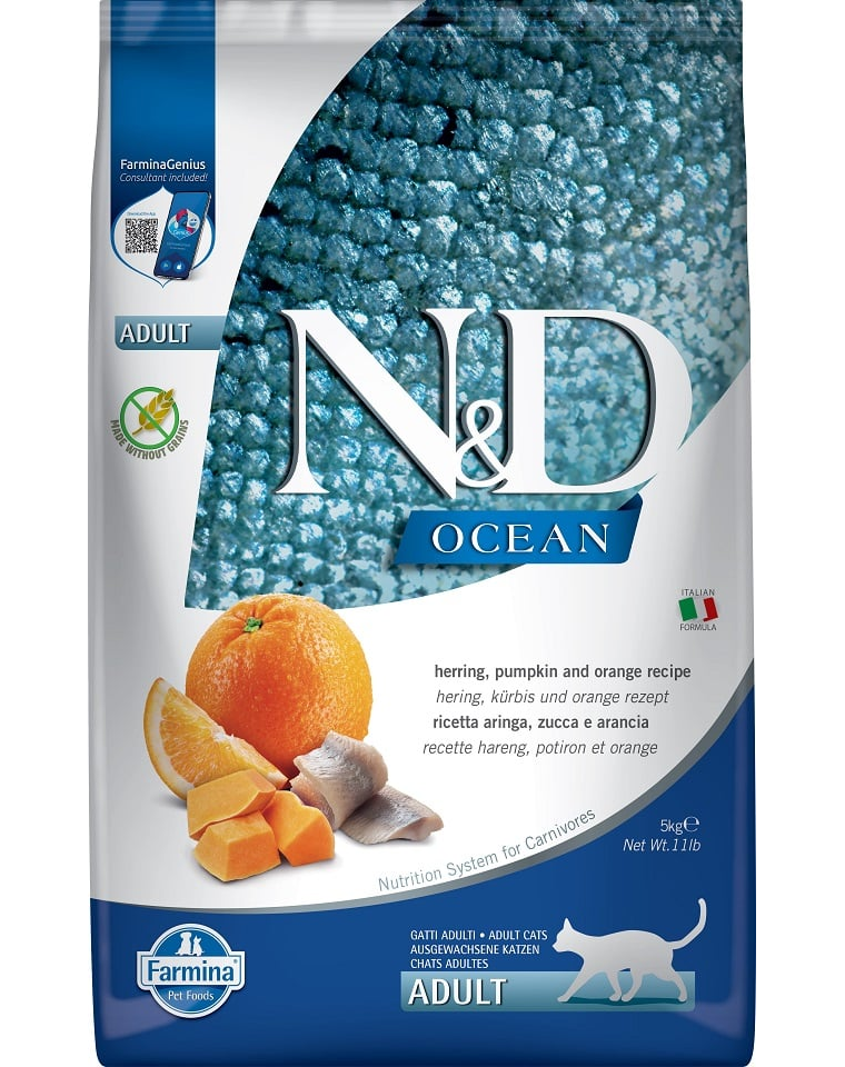 - Fő fehérjeforrás: Vadon fogott hering (friss és szárított), a receptúra 62%-a!
