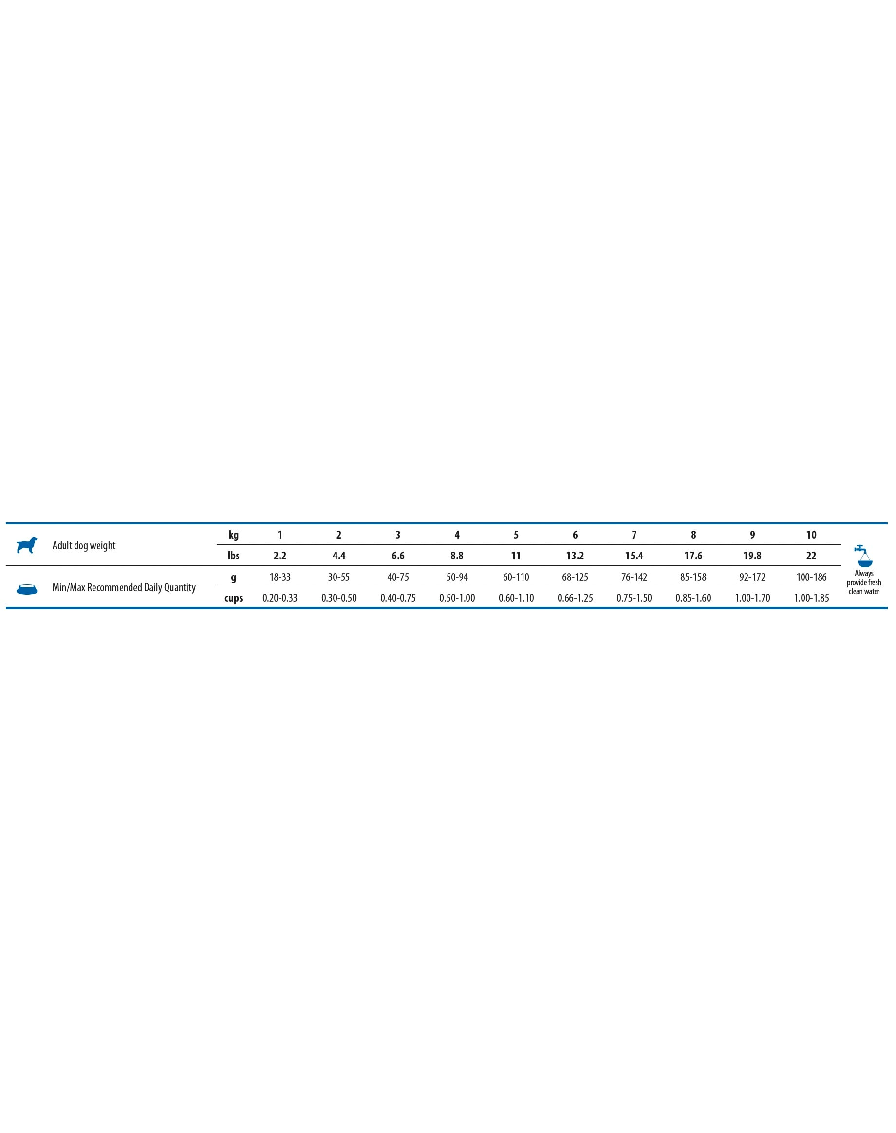 Az ajánlott adagolás tájékoztató jellegű, és egyedileg kell igazítani a háziállathoz, figyelembe véve a aktivitás mértékét és az állat egészségi állapotát.