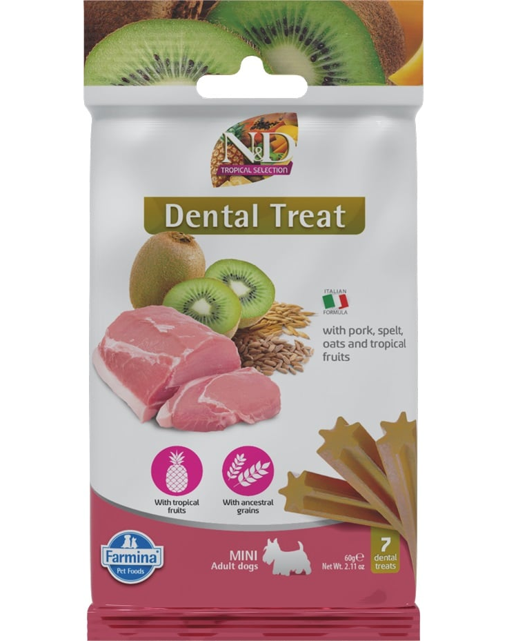 Fedezze fel az N&D Tropical Selection terméket – egy egyedülálló fogápoló finomságot, amelyet kutyája napi fogápolásához és egészségéhez fejlesztettek ki. A receptúra öt gondosan kiválasztott trópusi gyümölcsöt tartalmaz, amelyek természetes vitaminokat és antioxidánsokat biztosítanak, támogatva kedvence immunitását és általános jóllétét.