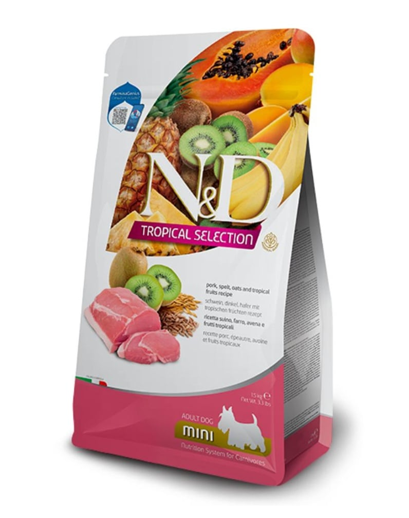 Ízletes, tápanyagban gazdag szárazeledel, mely kifejezetten felnőtt, kis testű kutyák számára készült. Fő fehérjeforrásként sertéshúst és sertéshús-port tartalmaz, rostos gabonákkal és egzotikus trópusi gyümölcsökkel – ezek támogatják a szervezetet vitaminokkal és antioxidánsokkal.