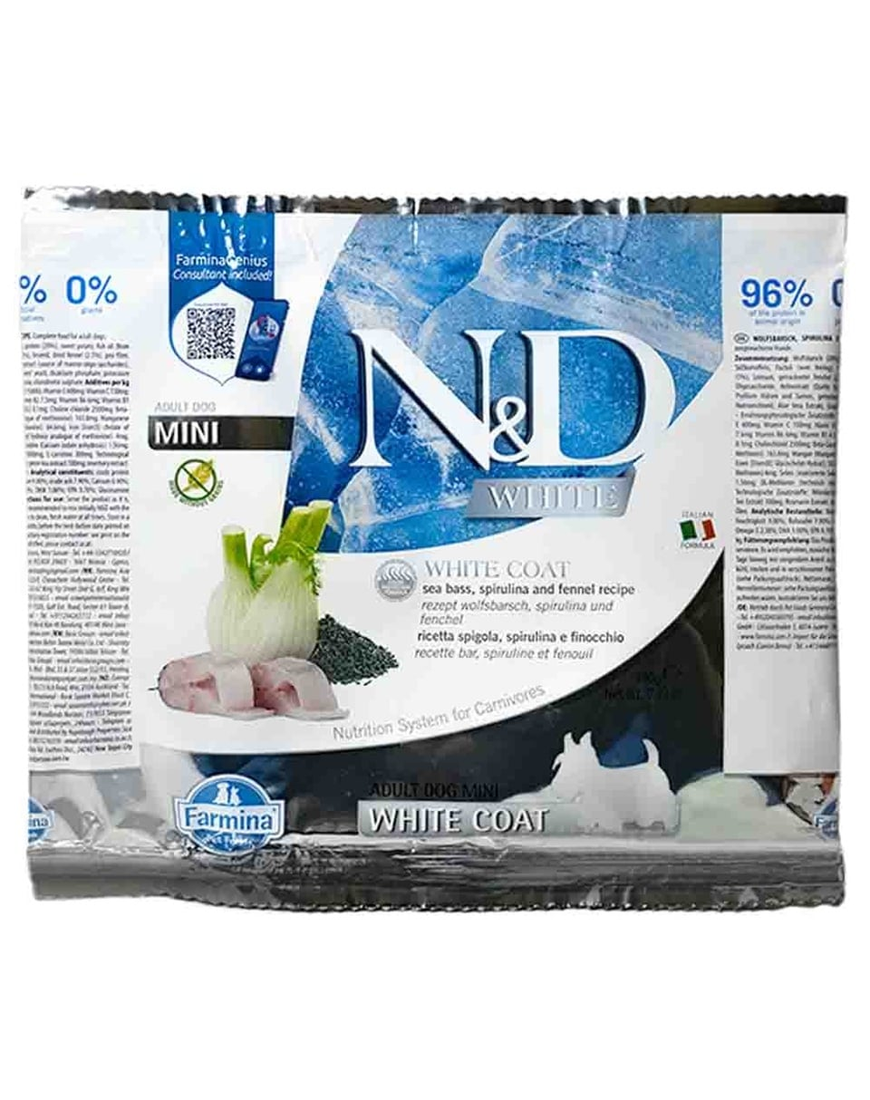 N&D White – Tengeri sügér, spirulina & édeskömény