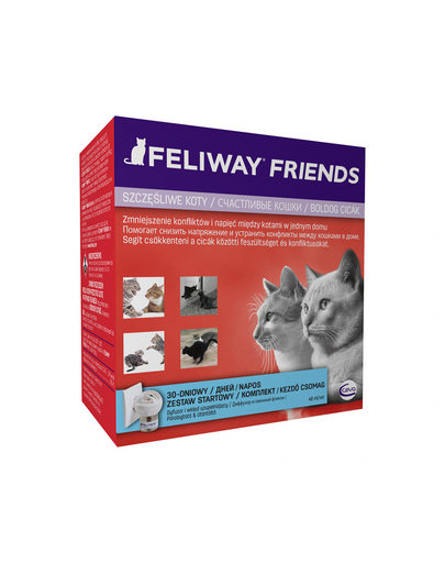 A FELIWAY Friends ezen feromonok szintetikus megfelelőjét tartalmazza, hogy segítsen a kötődés erősítésében az egy fedél alatt élő felnőtt macskáknál.