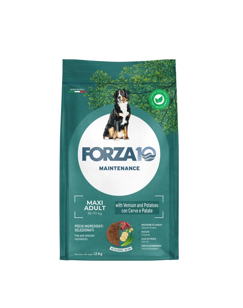 A Forza10 Maxi Maintenance szarvassal és burgonyával egy nagytestű kutyafajták számára kifejlesztett, nélkülözhetetlen eledel, amelyet kutyája optimális egészségének biztosítására fejlesztettek ki.