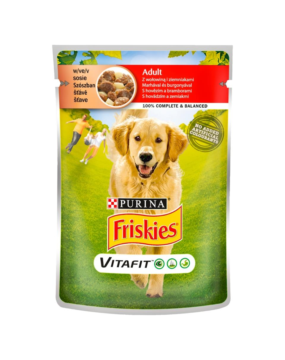 A praktikus tasakokba zárt Purina Friskies Adult Vital marhahússal és burgonyával mártásban támogatja kutyája egészségét. Biztosítja az állatok vitalitását: tömör széklet az egészséges emésztésnek köszönhetően, fényes szőrzet és egészséges bőr, csillogó szem - az éberség jele. Biztosítja a jó kondíció fenntartásához szükséges összes vitamint és tápanyagot. Mesterséges színezékektől, aromáktól és tartósítószerektől mentes.