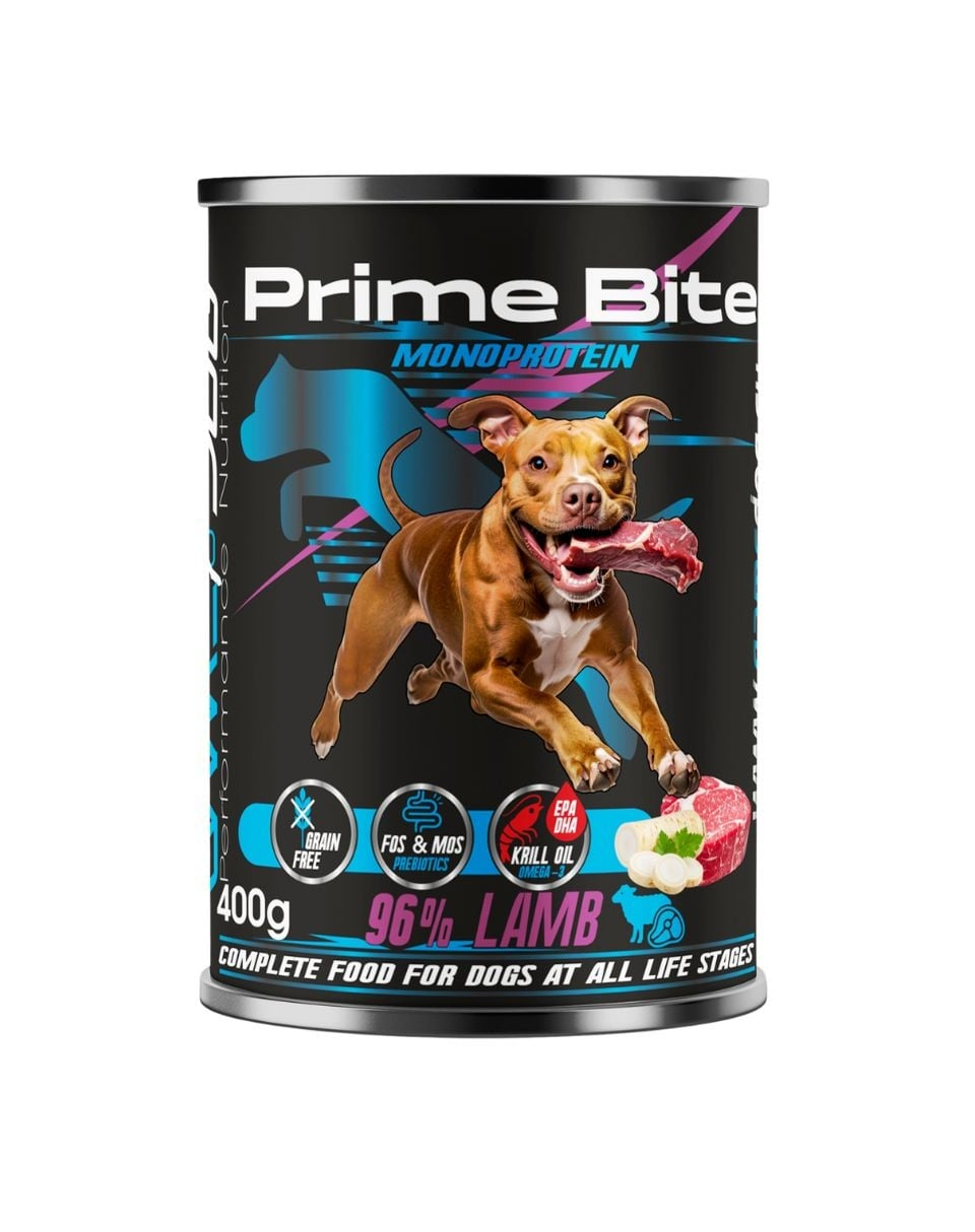 Minden Prime Bite konzerv 96% állati eredetű összetevőt tartalmaz, beleértve a 80% izomhúst és a 16% természetes báránylevest. A bárányhús könnyen emészthető, lágy és gazdag aminosavakban, ami kiváló fehérjeforrássá teszi a különböző igényű kutyák számára. A monoprotein formula csökkenti az allergiás reakciók kockázatát és támogatja a diéta ellenőrzését.