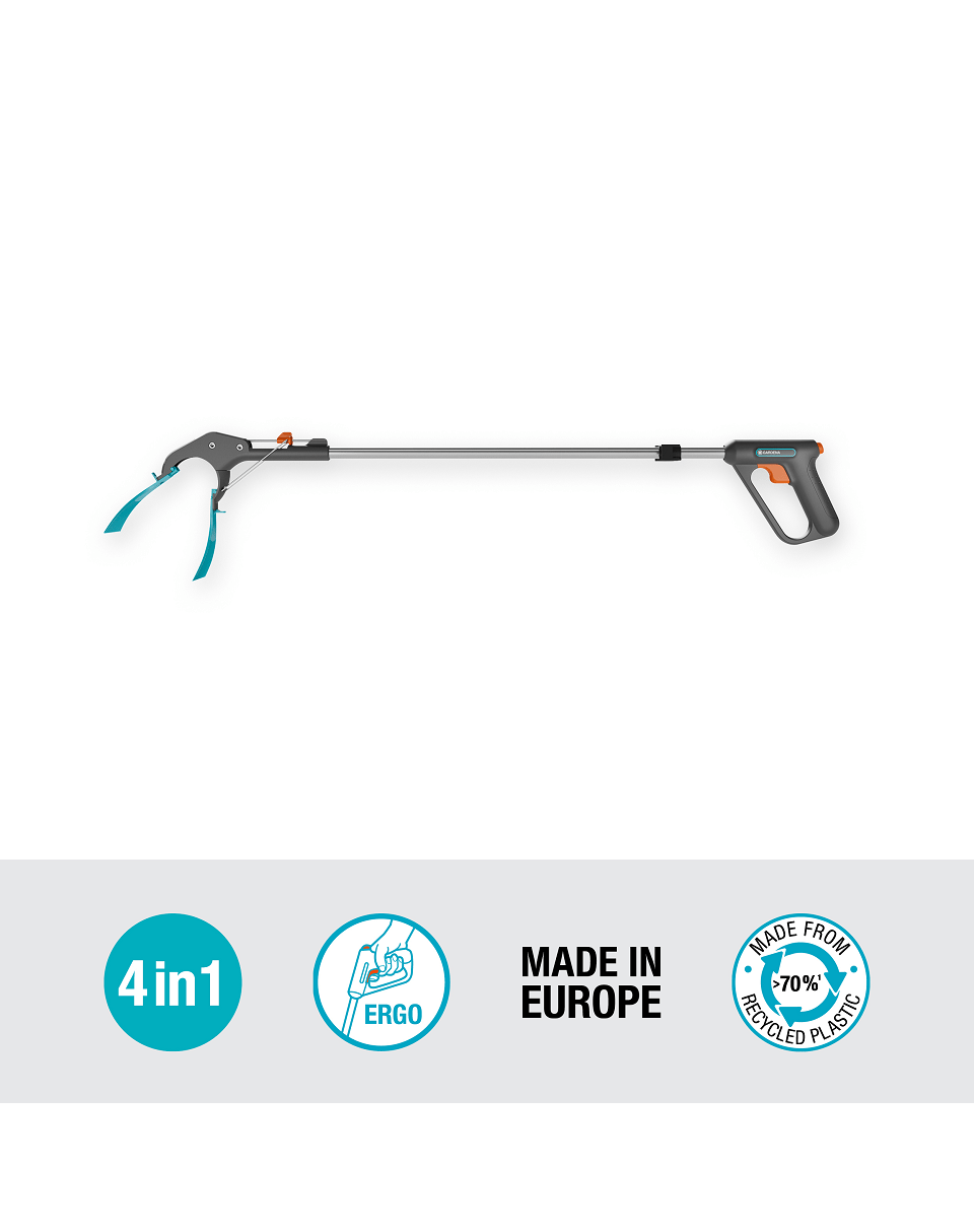 A GARDENA 4 az 1-ben markológépet ergonomikus kerti munkához tervezték, és ideális a kertben és a kert körül található szemét felszedéséhez.