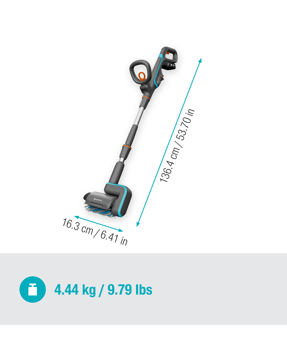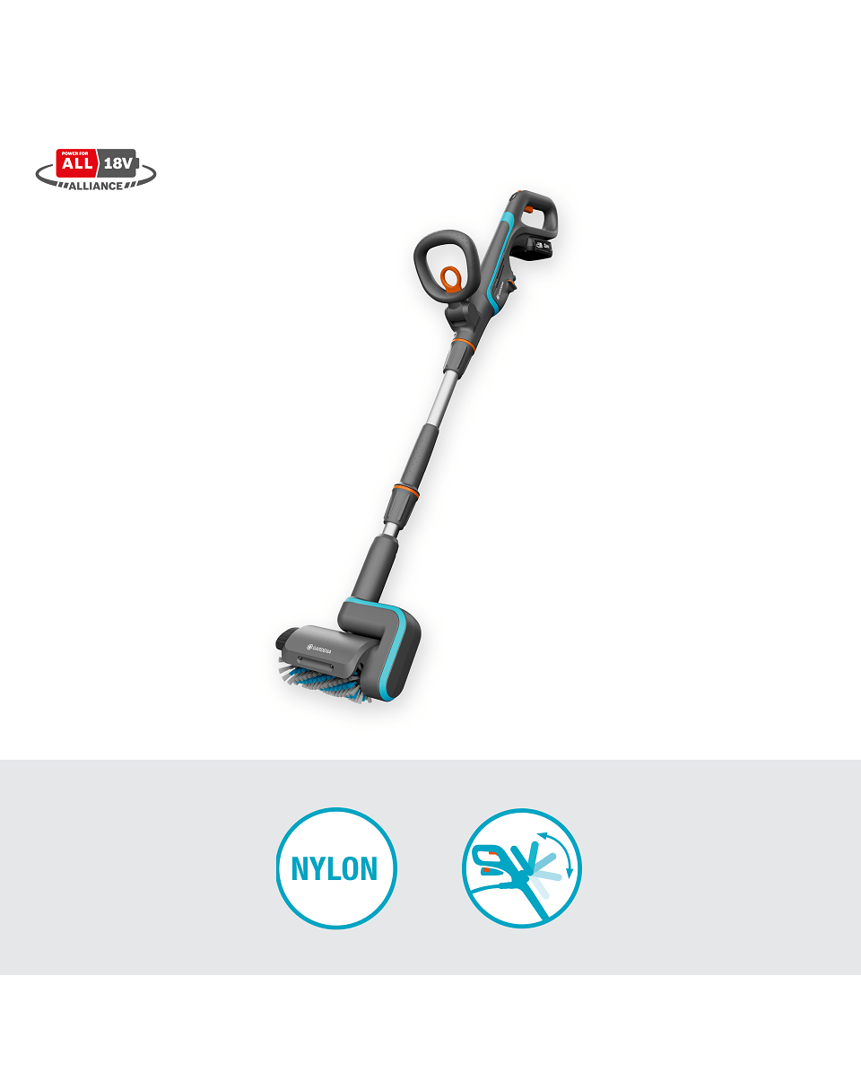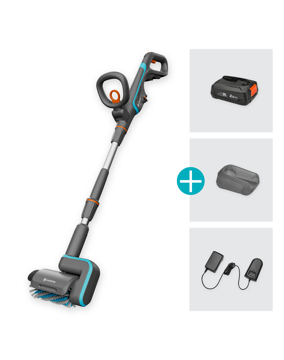 GARDENA AquaBrush vezeték nélküli teraszkefe - készlet fa, PVC, kő, teraszok, teraszok és egyenetlen felületek egyszerű tisztításához.
