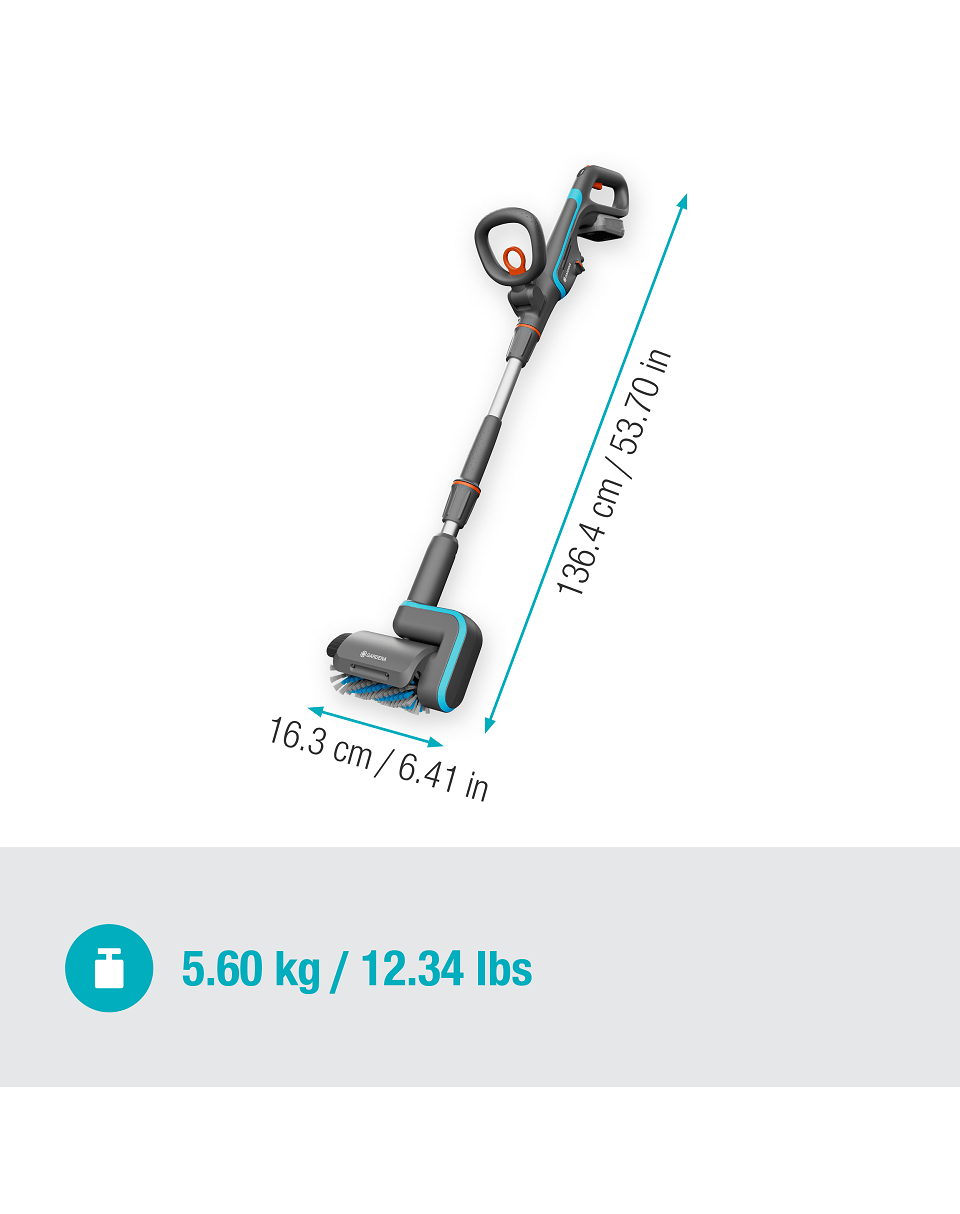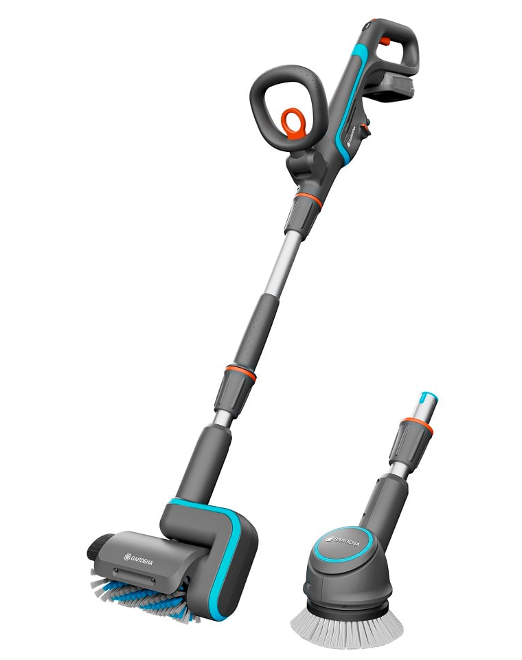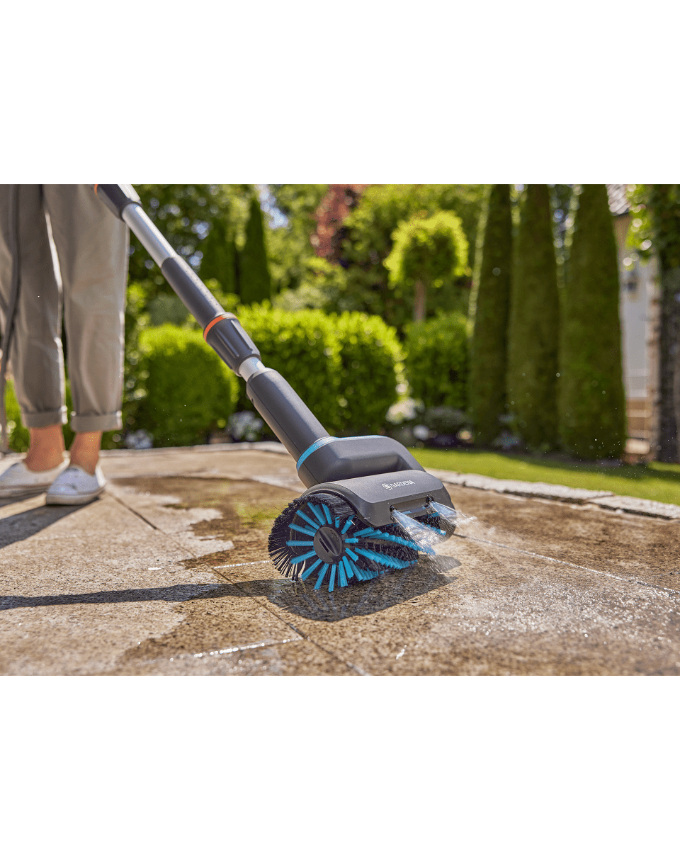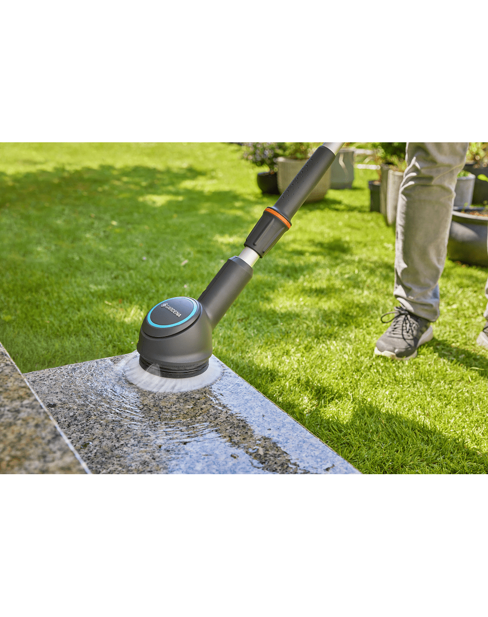 A GARDENA AquaBrush univerzális akkumulátoros kefe sokoldalú megoldás a különböző kültéri felületek tisztítására.