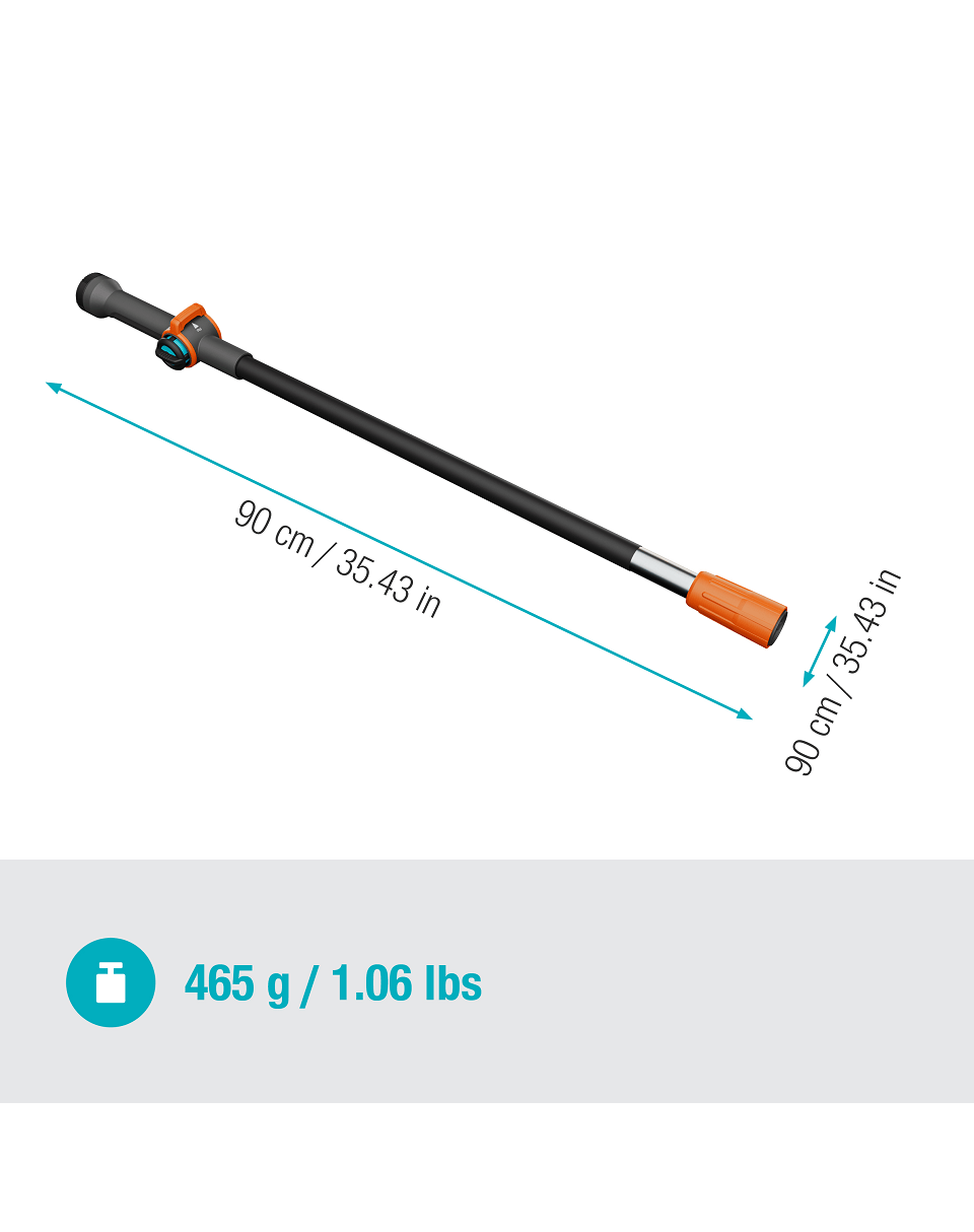A nyél 90 cm-rel növeli a munkatávolságot. Ezáltal sokkal könnyebbé válik a függőleges felületek, például kerítések, üvegházak vagy garázskapuk tisztítása. A fogantyú kiváló minőségű, tartós alumíniumból készült. Könnyen kezelhető, és a speciális bevonatnak köszönhetően még alacsony hőmérsékleten sem vezeti a hőt.