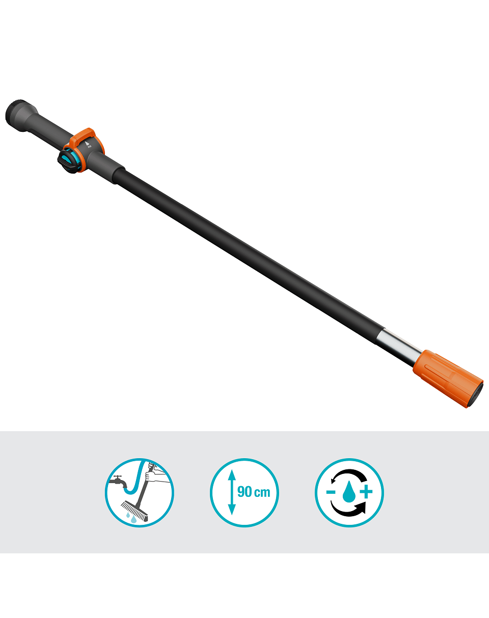 A vízellátó rúd az eredeti GARDENA system csatlakozó segítségével egyszerűen csatlakoztatható a kerti tömlőhöz. Ez lehetővé teszi a hatékony tisztítást, mivel a víz a nyélen keresztül közvetlenül a kefére irányul, és pontosan oda jut, ahol szükség van rá. Ez nagyban megkönnyíti a nagyobb területek, például kerítések vagy üvegházak tisztítását. Ugyanakkor a tisztítás is kényelmesebbé válik, mivel nem kell vödörnyi vizet használni a tisztításhoz.