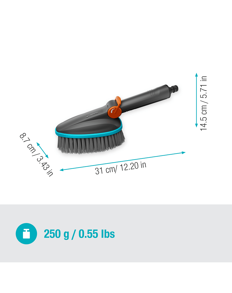 Egyszerűen csatlakoztassa a tisztítókefét a vízvezetékhez. Az áramló fogantyúval ellátott kézi kefe megkönnyíti a kis, érzékeny felületek, például kerti kerítések nedves tisztítását anélkül, hogy állandóan le kellene hajolnia a vödörért. A tisztítókefe egy kézzel is működtethető a könnyű tisztítás érdekében. A csúszásmentes fogantyú biztonságos és stabil működést biztosít.