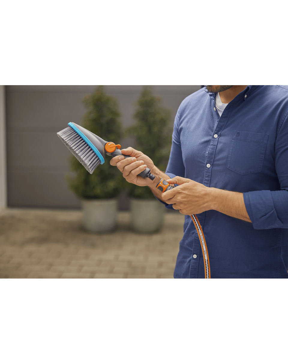 A GARDENA szappantartó alaposabb tisztítást biztosít. Egyszerűen helyezze a szappanbetétet a kefébe, csatlakoztassa a kefét a tömlőhöz, és a szappan automatikusan hozzáadódik a vízhez. Így nincs szükség a víz és a speciális tisztítószerek munkaigényes keverésére, és a kefével közvetlenül a tisztítandó felületre juttathatja a víz és a szappan keverékét. A kefe és a szappantartó ideális kombináció a kerti kerítések és hasonló felületek tisztán tartásához.
