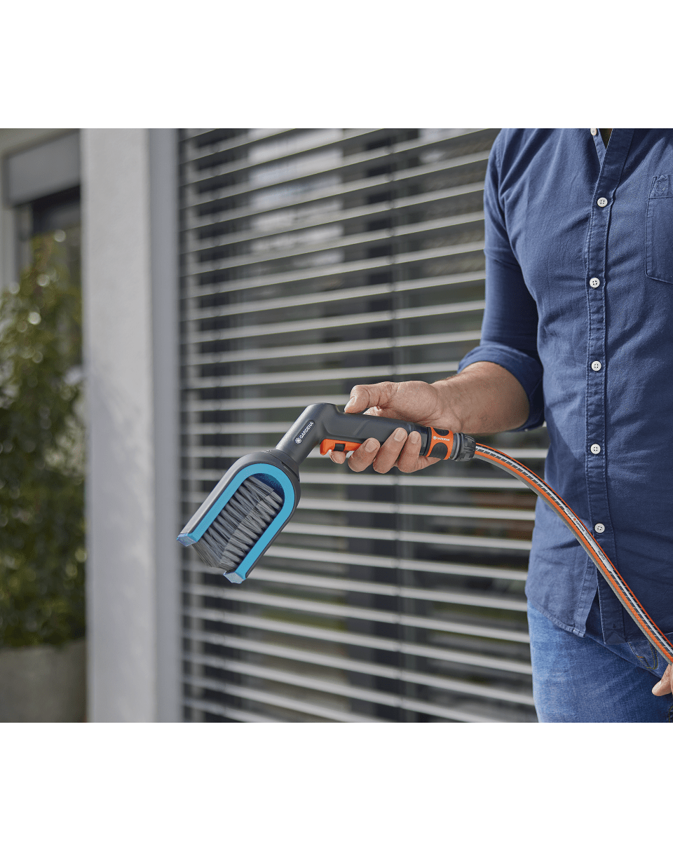 A kerti tömlőcsatlakozóval ellátottGARDENA lamellakefe megkönnyíti a lamellák tisztítását, kevesebb erőfeszítéssel.