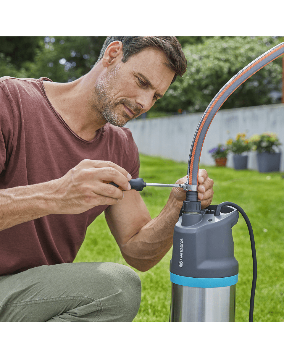 A merülőnyomású szivattyú akár 5900 l/h áramlási sebességgel és 3,5 bar nyomással rendelkezik, így egyszerre három nagyméretű locsolófej ellátására alkalmas. Ez a praktikus szivattyú 149 mm átmérőjű, és 150 mm-es és nagyobb kutakban is használható. A tartozékokat a beépítés szabadsága érdekében mellékeltük: egy 20 m hosszú szerelőkötél és egy 15 m hosszú kábel biztosítja a maximális beépítési szabadságot.