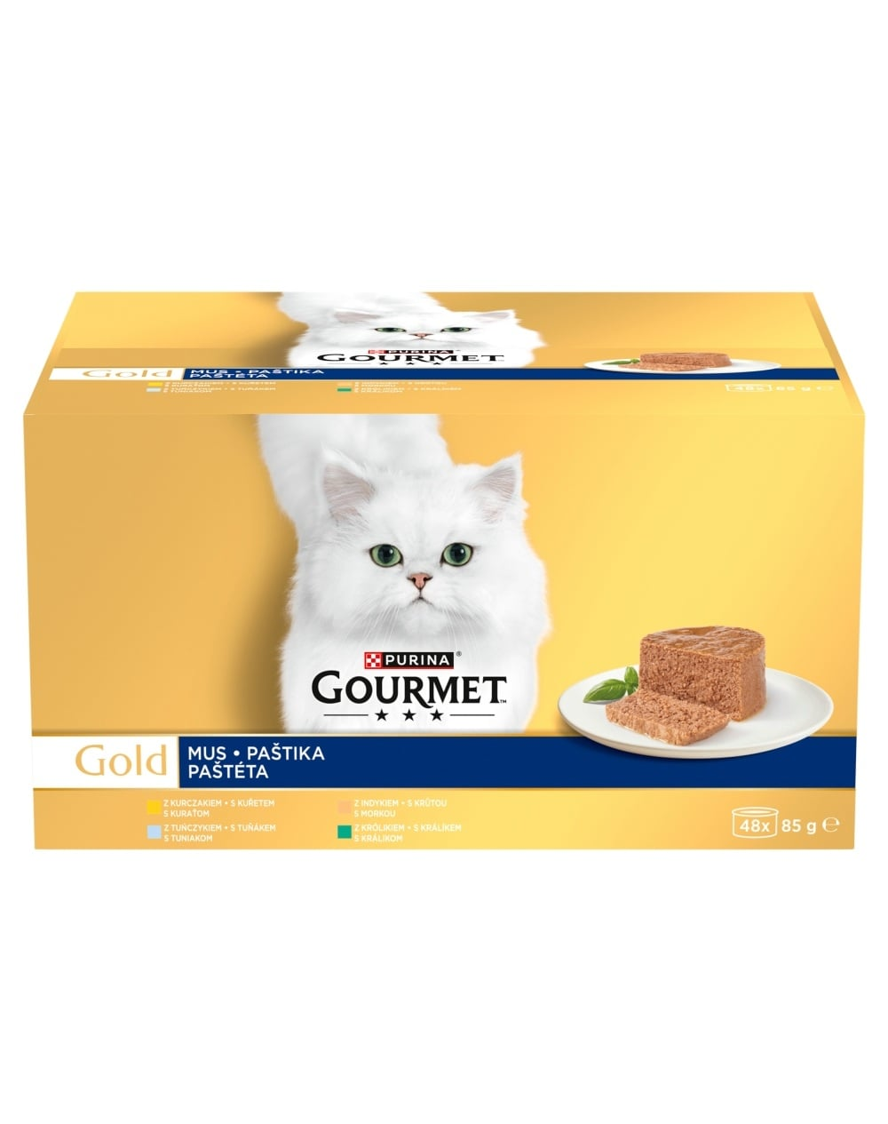 A GOURMET Gold Mus – ízek keveréke egy teljes értékű, ízletes nedves eledel felnőtt macskák számára, csirke, pulyka, tonhal és nyúl ízesítésben, selymes, lágy mus állaggal.