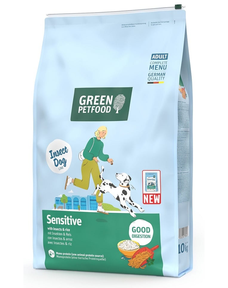 A Green Petfood Sensitive with Insects & Rice egy egészséges, természetes választás, amely gondoskodik kutyád jó közérzetéről és napi energiájáról.