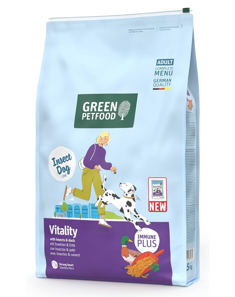 GREEN PETFOOD InsectDog with Duck Vitality – gabonamentes eledel rovarokkal és kacsával kutyák számára