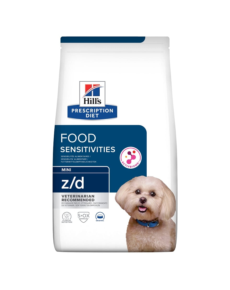 A Hill's PRESCRIPTION DIET z/d Food Sensitivities kis testű kutyák számára készült száraz eledelt a Hill's dietetikusai és állatorvosai kifejezetten az ételintoleranciák csökkentésére fejlesztették ki. Az eledel kisebb méretű falatokkal készül, hogy megfeleljen a kis testű kutyák, illetve a kisebb falatokat kedvelő kutyák igényeinek.