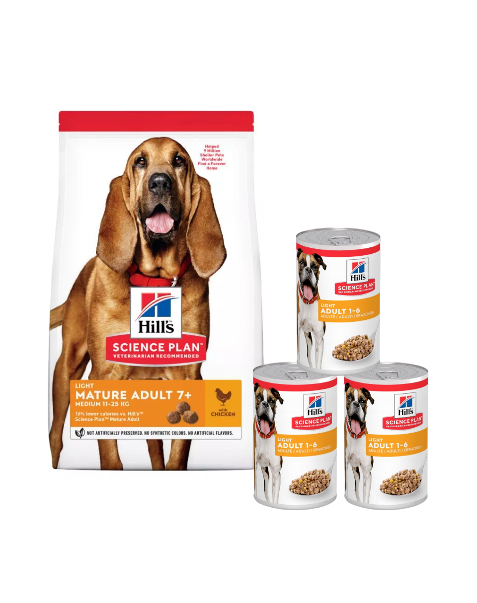 A receptúra csökkentett kalóriatartalmú, az idősebb kutyák lassabb anyagcseréjéhez igazítva.