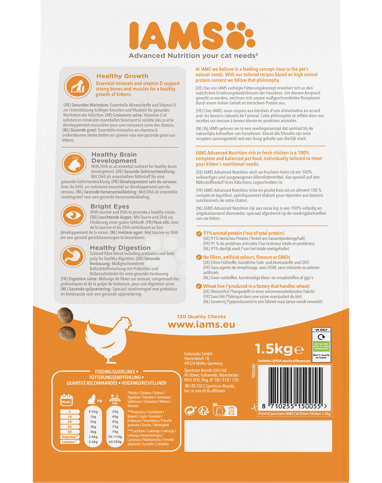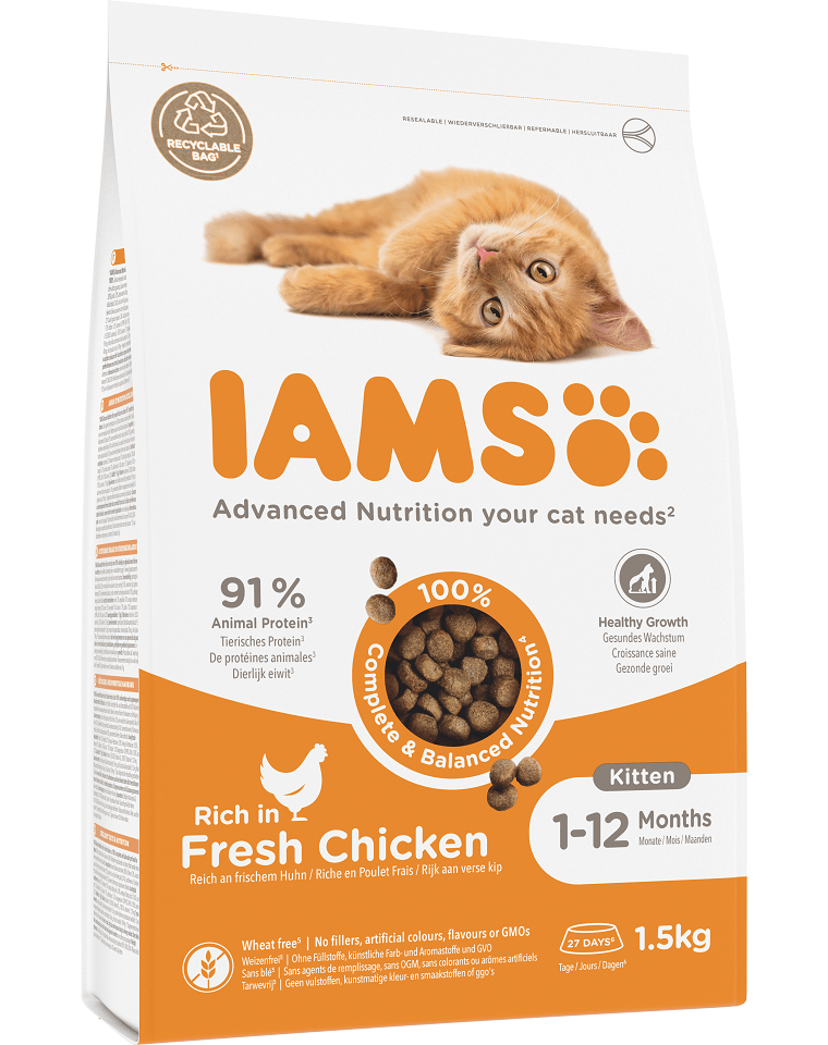 Az IAMS for Vitality Kitten Food egy 100%-ban teljes értékű és kiegyensúlyozott speciális eledel, amely ízletes és serkenti macskája fejlődését.
