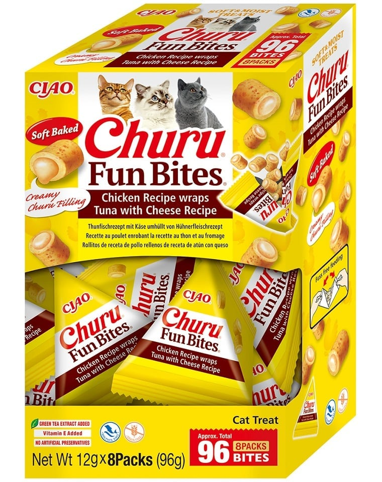 A Churu Fun Bites sajttal ideális snack macskáknak, amely ötvözi az íz, az egészség és a kényelmet. Próbálja ki – macskája imádni fogja!