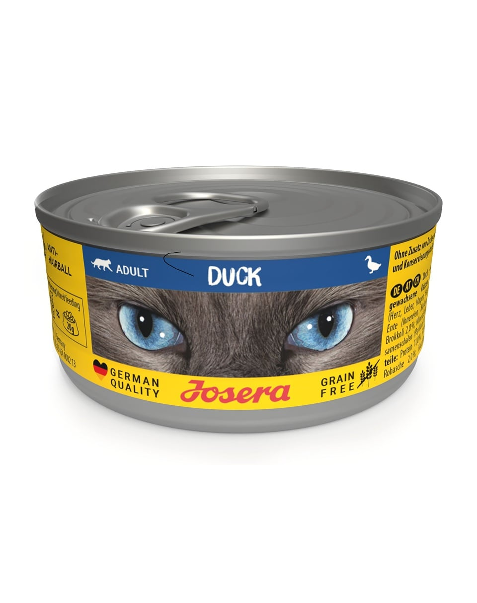 Ha a kedvenced ízletesen fogyasztja az ételt, a gazdája is elégedett. Ez egy újabb ok, hogy gondoskodj a finom étrendi változatosságról – például válaszd a Josera Duck új nedves táplálékunkat konzervben! A kacsa íze még a válogatós macskákat is étkezésre ösztönzi. A Duck konzerv táplálék nagyobb folyadékbevitelt biztosít a macskáknak, ami értékes azok számára, akik nem szívesen isznak vizet.