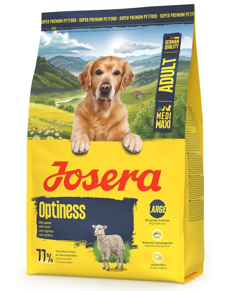 JOSERA Optiness Adult egy teljes értékű száraz eledel, amelyet kifejezetten közepes és nagy testű kutyák számára készítettek. A bárányhús és rizs receptúrájának köszönhetően kiváló toleranciát biztosít, és még a válogatós kedvencek számára is megfelelő.