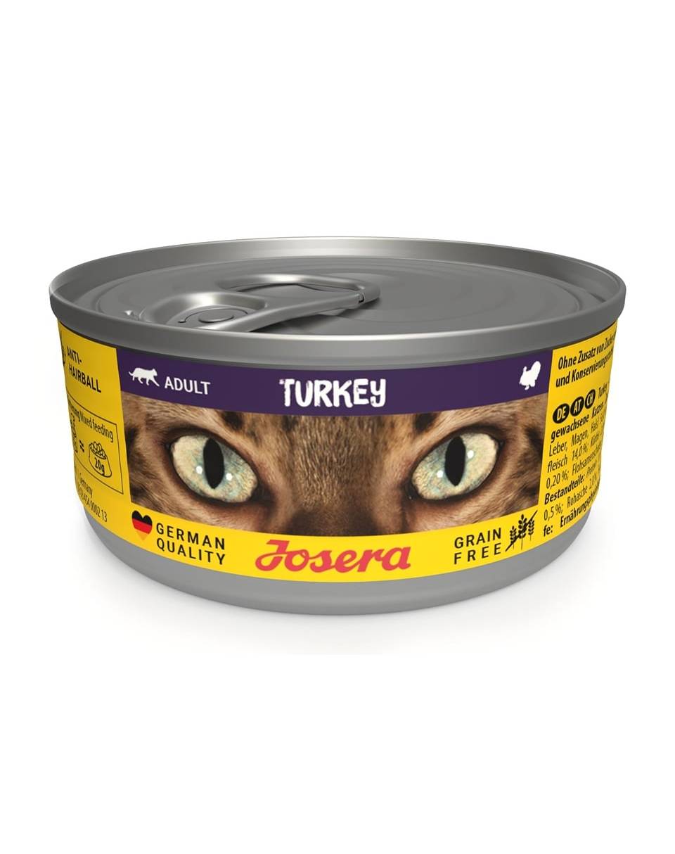 Állataink sok előnnyel rendelkeznek felettünk - mindig tudják, mit szeretnének enni. Az új, nedves Josera Turkey eledel ízletes válasz ezekre az igényekre. Finom pulykás ételünk gabonamentes receptúrával és kiváló ízzel rendelkezik. A nedves állag miatt a macskák, akik nem szívesen isznak, jelentős mennyiségű folyadékot kapnak a lédús eledellel.