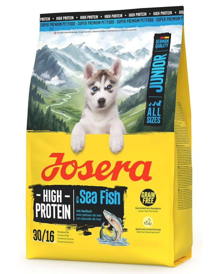 Teljes értékű száraz táp, amelyet minden fajtájú fiatal kutyának fejlesztettek ki, akiknek nagy mennyiségű energiára és fehérjére van szükségük a megfelelő növekedéshez. A JOSERA High Protein Junior Sea Fish gabonamentes táp tengeri halakkal, lazaccal és édesburgonyával kiváló emészthetőséget és ízletességet biztosít. A magas fehérje- és omega-zsírsavtartalom támogatja az izmok, az idegrendszer és az immunrendszer fejlődését.