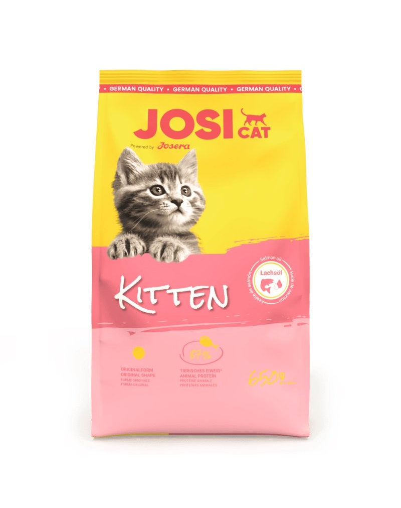 A JosiCat Kitten segítségével kis felfedeződ mindent megkap, amire szüksége van. Ez egy magas energiatartalmú, baromfifehérjében gazdag eledel. A receptúrát vitaminokkal és ásványi anyagokkal gazdagították az egészséges növekedés támogatása érdekében. A hozzáadott lazacolaj értékes omega-3 zsírsavakat biztosít, amelyek támogatják az agy és a látás fejlődését.