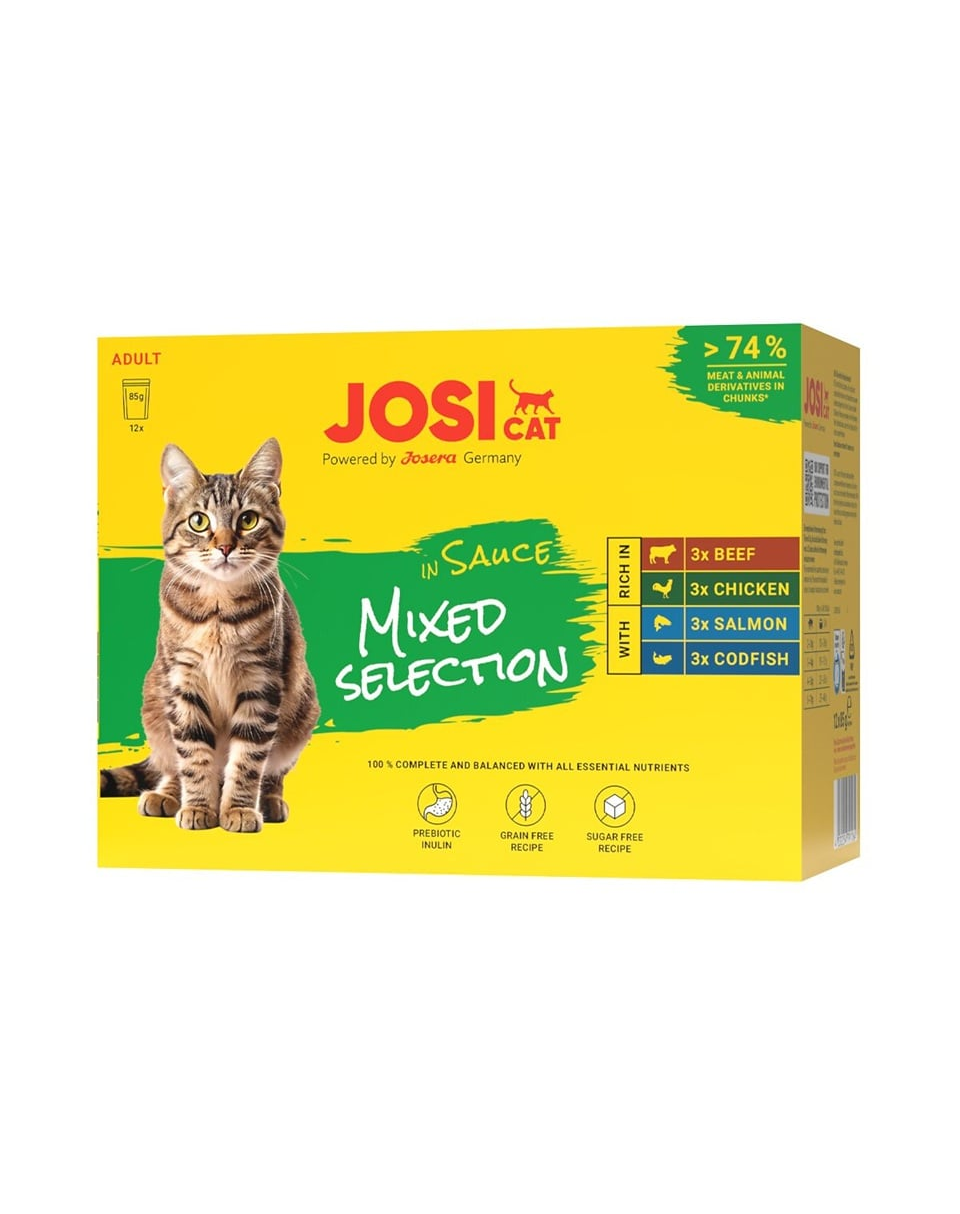 JosiCat Multipack Mixed Selection in Sauce egy ízletes, kiegyensúlyozott és könnyen használható nedves táplálék, amely minden nap újdonságot biztosít a macskádnak — hús és hal finom szószban, felesleges adalékanyagok nélkül. Ideális, ha a minőséget, ízt és változatosságot szeretnéd ötvözni kedvenced napi étrendjében.