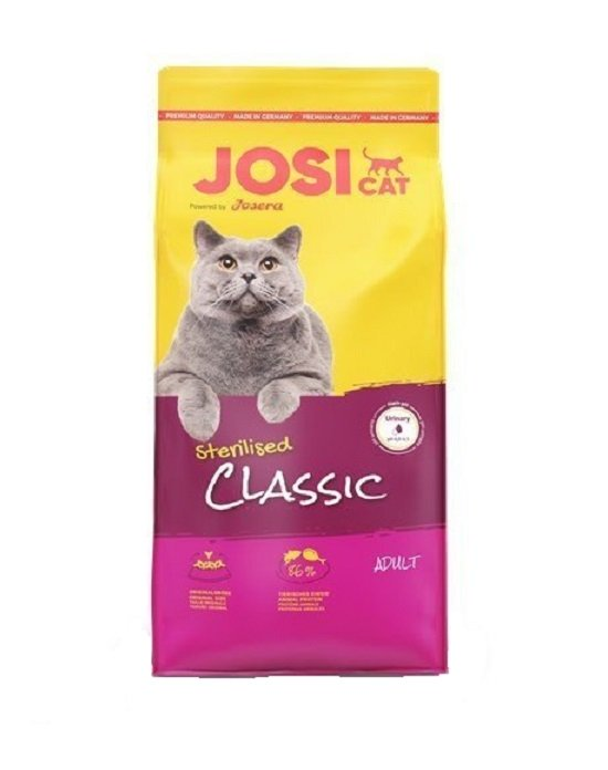 A JosiCat Sterilised Classic kiváló menüt kínál a sterilizált macskák számára. A magas fehérje- és alacsony zsírtartalom serkenti a macska anyagcseréjét és segít a testsúly megtartásában.