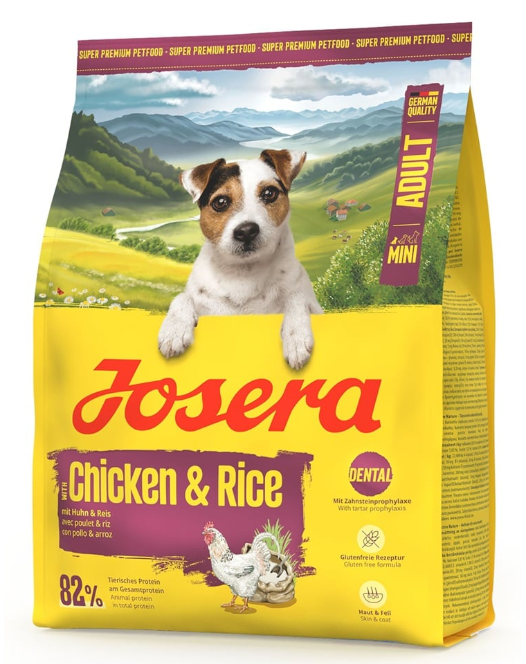 JOSERA Mini Adult Chicken & Rice – gluténmentes táplálék csirkével és rizzsel felnőtt kisméretű kutyák számára