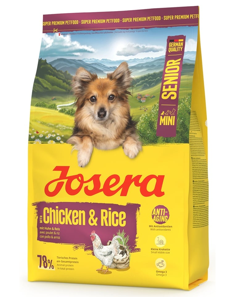 JOSERA Mini Senior Chicken & Rice – könnyen emészthető, gluténmentes eledel idősebb kis testű kutyáknak
