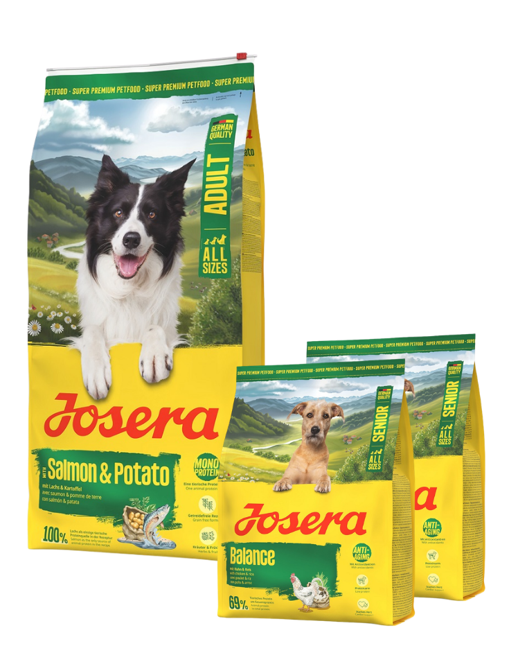 Fontos, hogy a mérsékelt fehérje-, zsír- és ásványianyag-tartalom miatt a Josera Salmon & Potato kiváló választás idősebb vagy kevésbé aktív kutyák számára is, akik könnyű, de teljes értékű étrendet igényelnek.