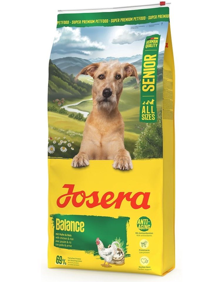 JOSERA Senior Balance egy teljes értékű száraz táp idősebb kutyák számára, akiknek energiaszükséglete korlátozott.