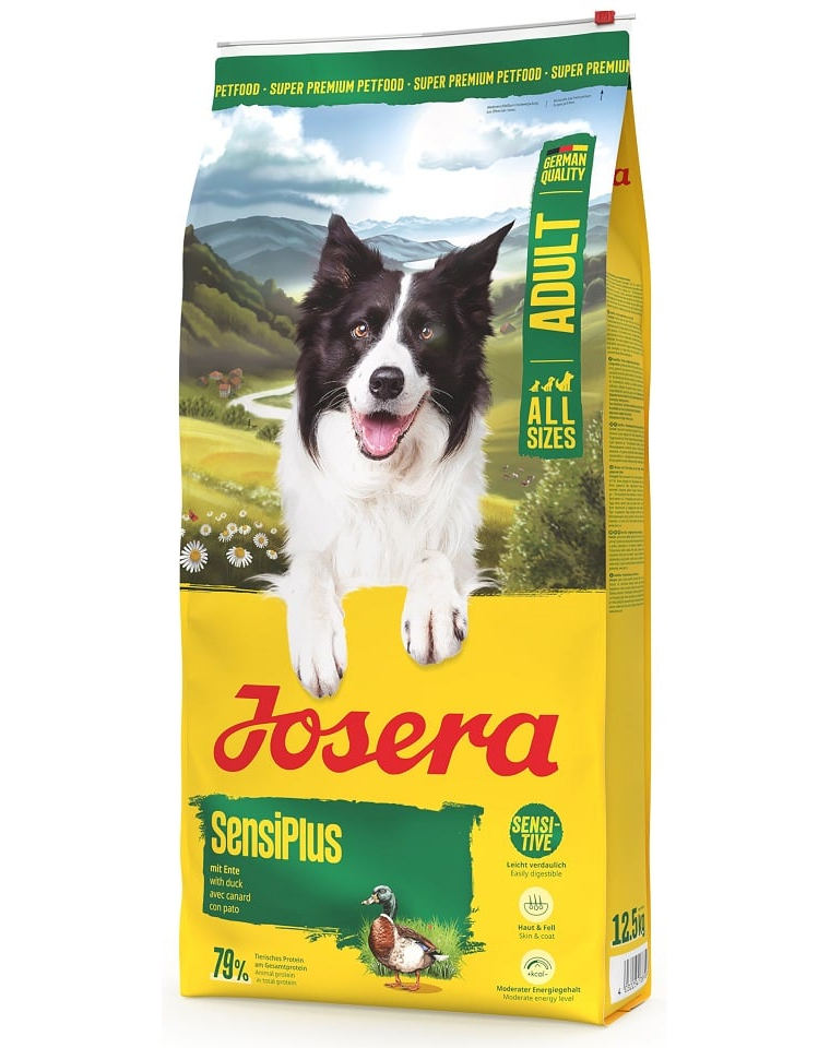JOSERA SensiPlus egy teljes értékű, könnyen emészthető száraz táp felnőtt kutyák számára, amelyet kifejezetten az érzékeny emésztőrendszer figyelembevételével fejlesztettek ki.