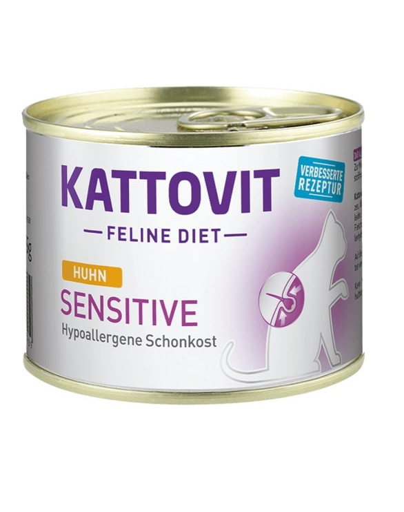 A forrásanyag- és tápanyag-intolerancia tüneteinek csökkentése. Kattovit Feline Diet - SENSITIVE érzékeny macskák számára, akik bizonyos táplálékallergiában szenvednek. Kizáró étrend: Csak egyféle húst használnak, nem adnak hozzá szénhidrátokat, például gabonaféléket. Kerülni kell a csemegék hozzáadását.